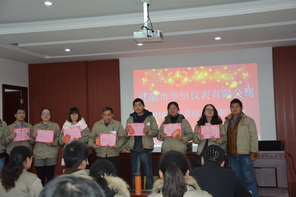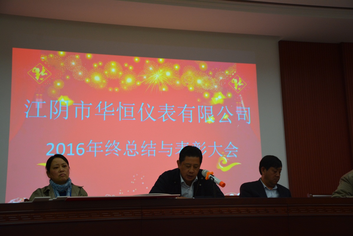 2017年1月23日,江陰市華恒儀表有限公司“2016年度總結(jié)與表彰大會(huì)”在公司大樓三樓會(huì)議大廳隆重舉行。公司董事長(zhǎng)曹軍華先生、總經(jīng)理黃冬華先生、財(cái)務(wù)總監(jiān)耿敏女士及全體員工共聚一堂、回望總結(jié)、共賀勝利、展望未來。